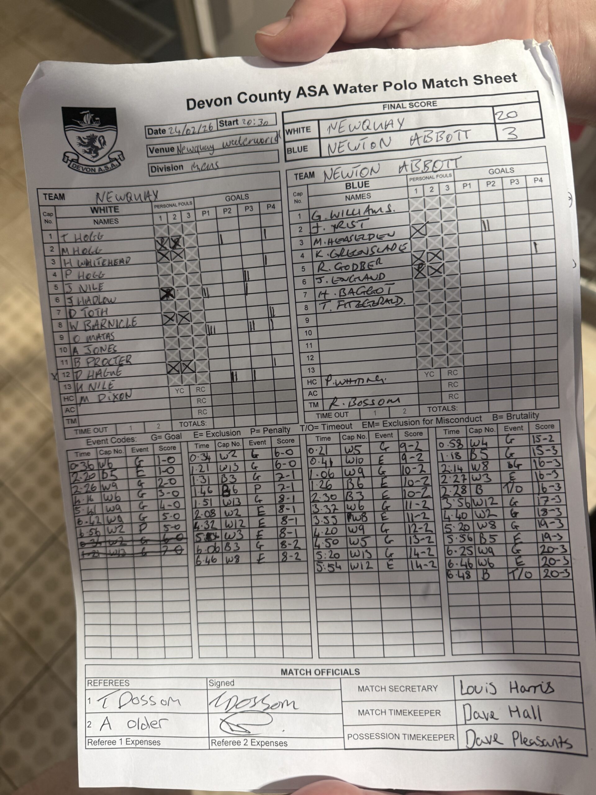 Tue, 24 FebNewquayNewton Abbot20-3Newquay Leisure World Swimming PoolMatch Sheet